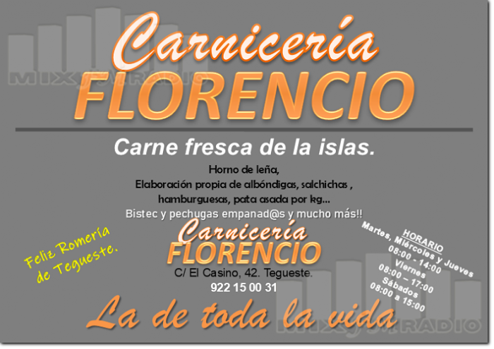 CARNICERÍA FLORENCIO - MIX FM RADIO Tenerife. LA RADIO de la COMARCA. 98.9 fm. Tegueste, Valle de Guerra, Bajamar, Tejina, Tacoronte, Punta del Hidalgo...