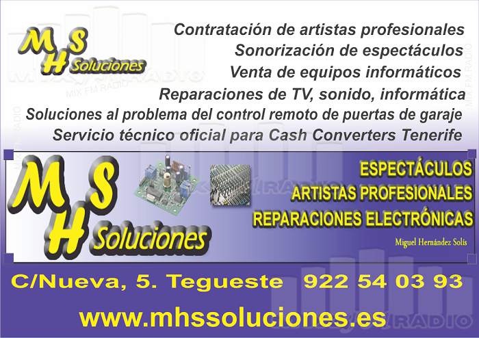 MHS SOLUCIONES - MIX FM RADIO Tenerife. LA RADIO de la COMARCA. 98.9 fm. Tegueste, Valle de Guerra, Bajamar, Tejina, Tacoronte, Punta del Hidalgo...